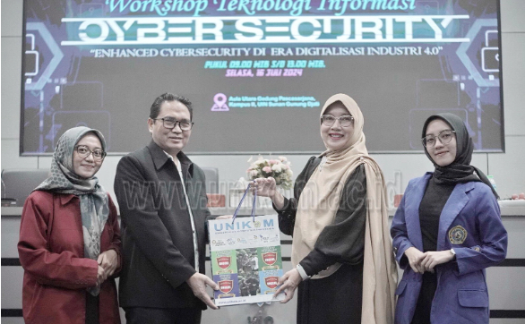 BANDUNG, UNIKOM – Forum Mahasiswa Pascasarjana (FORMACA) Universitas Islam Negeri (UIN) Sunan Gunung Djati Bandung bekerjasama dengan Pusat Penelitian dan Pengembangan Mahasiswa (PASMA) Fakultas Pascasarjana UNIKOM telah menyelenggarakan Workshop bertajuk “Enhanced Cybersecurity Awareness di Era Digitalisasi industri 4.0” pada Selasa, 16 Juli 2024. 2 orang Dosen Magister Sistem Informasi UNIKOM dihadirkan selaku narasumber pada kegiatan work shop tersebut, antara lain, Geraldi Catur Pamuji, S.Kom., M.Kom., yang juga menjabat sebagai Pembina Mahasiswa Pascasarjana UNIKOM, serta Ketua Program Studi Magister Sistem Informasi, Dr. Yeffry Handoko Putra, S.T., M.T.